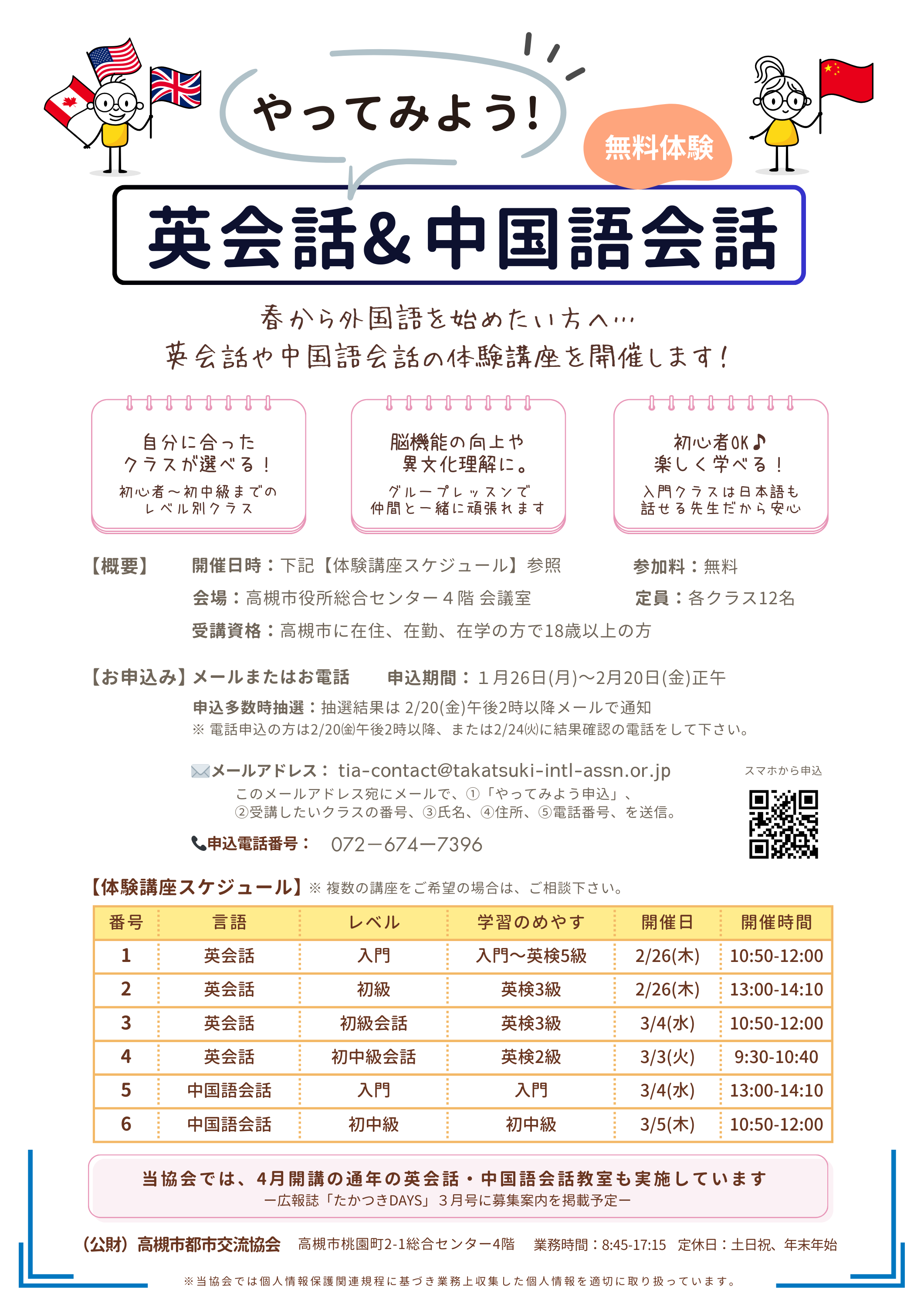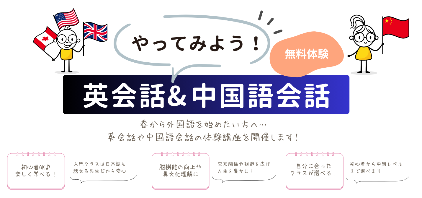 ・【NEW!】「やってみよう!英会話&中国語会話」無料体験