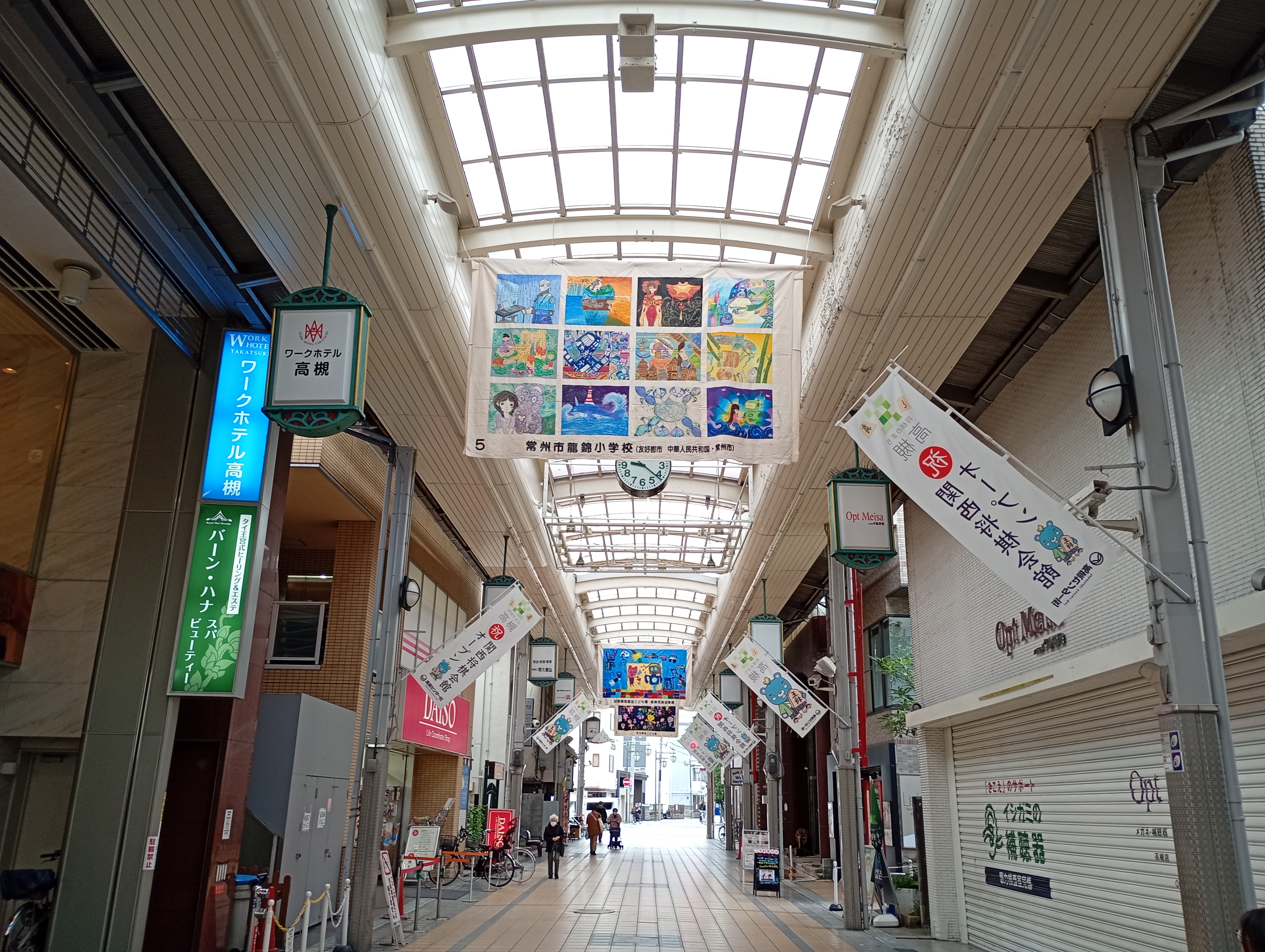 商店街にずらっと画布が並んでいます✨圧巻です! 常州市・龍錦小学校