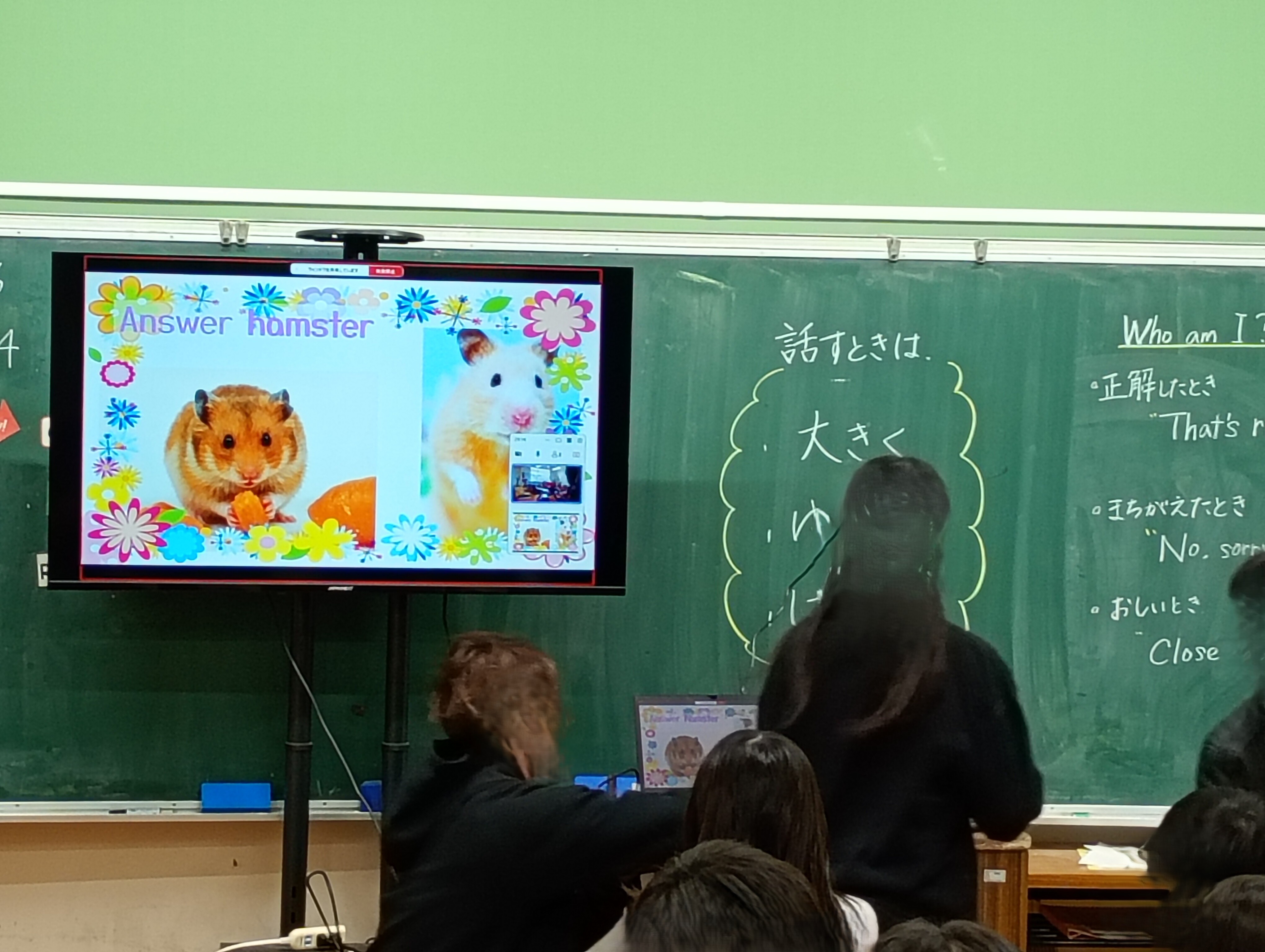 (写真右)3つのヒントから答えを連想する「Who am I」クイズの様子