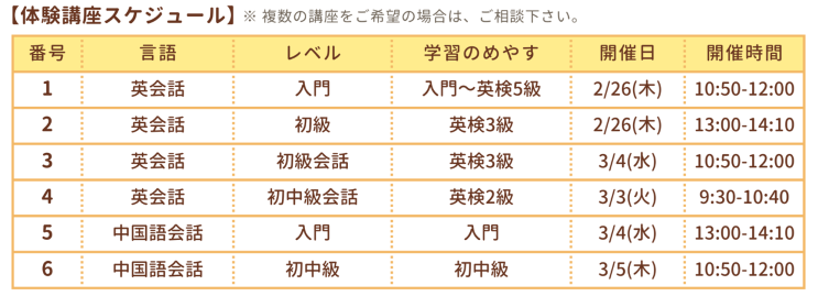 春から外国語を始めたい方へ…。英会話や中国語会話の体験講座を開催します!